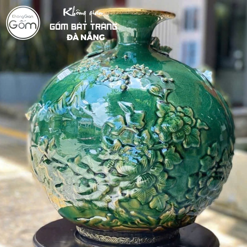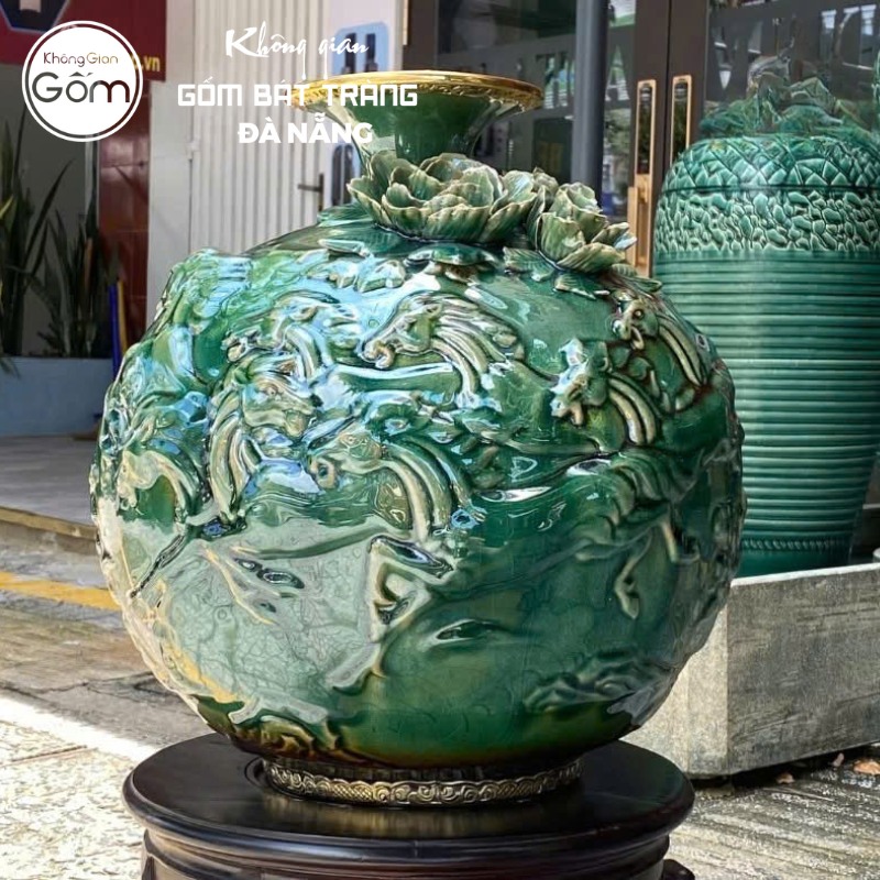Trên nền men cổ điển đó, những họa tiết phong thủy kinh điển như “Công Đào”, “Bát mã” hay “Hoa sen” được các nghệ nhân đắp nổi một cách công phu. Từng khối hình sống động, uyển chuyển nổi bật hẳn lên trên bề mặt, tạo nên hiệu ứng thị giác ba chiều đầy ấn tượng mà bạn có thể cảm nhận rõ ràng bằng tay.