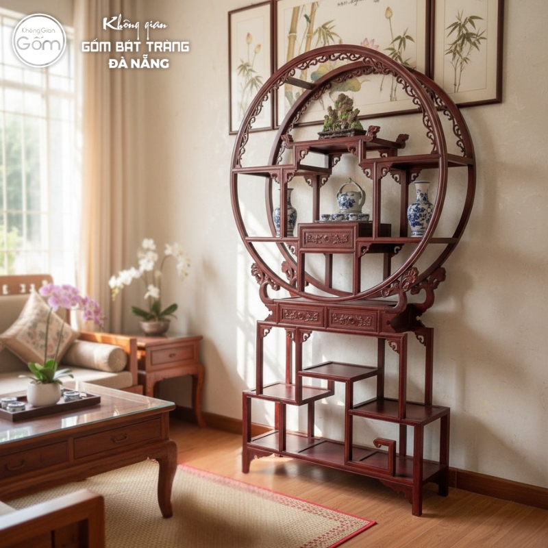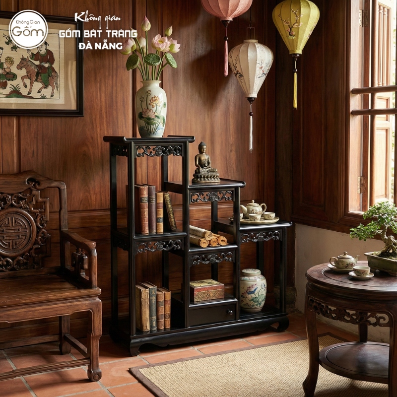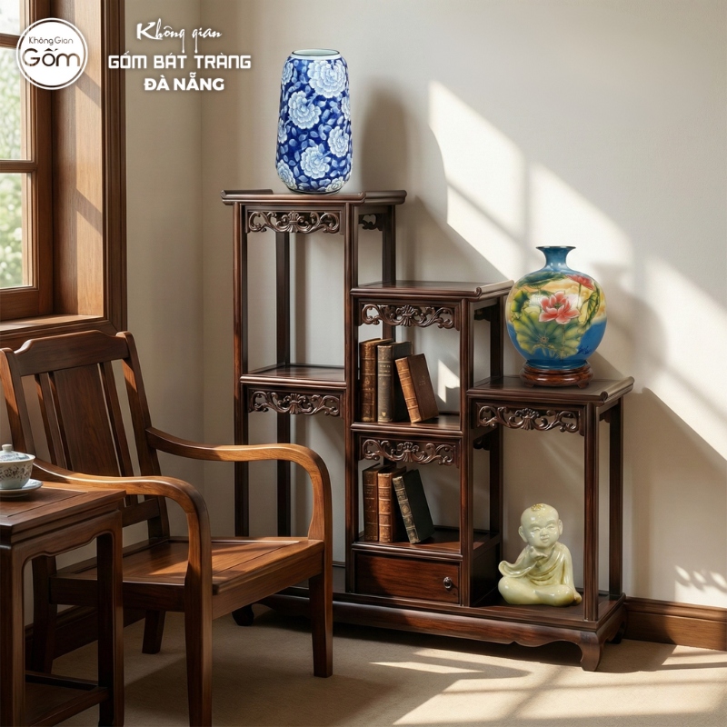 Đa dạng mẫu kệ gỗ mỹ nghệ đẹp, sang trọng có sẵn tại showroom Không gian Gốm Đà Nẵng