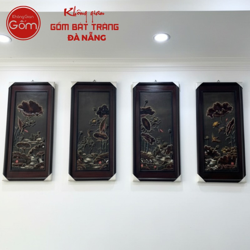- Tranh bích tiểu liên hoa đắp nổi: Hình ảnh đóa sen được đắp nổi trên nền gốm mộc mạc tượng trưng cho sự thanh khiết, trong sạch và giác ngộ. Treo tranh sen trong phòng thờ giúp không gian thêm thanh tịnh và trang nhã.