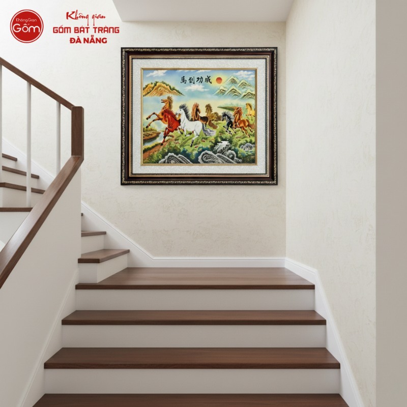 Mẫu tranh gốm sứ treo ở cầu thang đẹp, ấn tượng