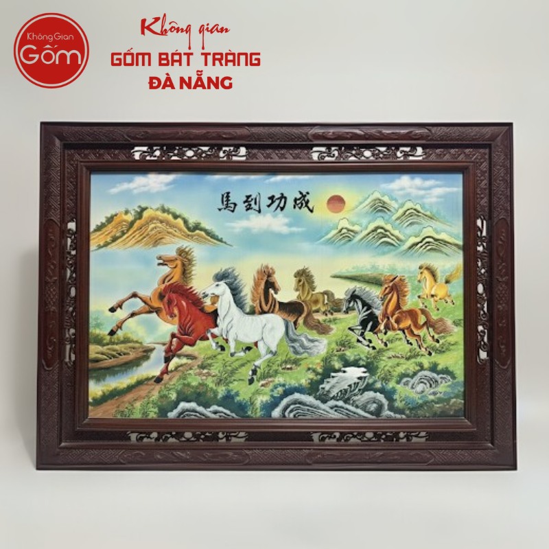 - Tranh Mã Đáo Thành Công: Hình ảnh tám chú ngựa khỏe khoắn cùng phi về một hướng tượng trưng cho sức mạnh, sự đoàn kết và ý chí kiên cường, báo hiệu sự thành công, thăng tiến nhanh chóng trên con đường sự nghiệp.