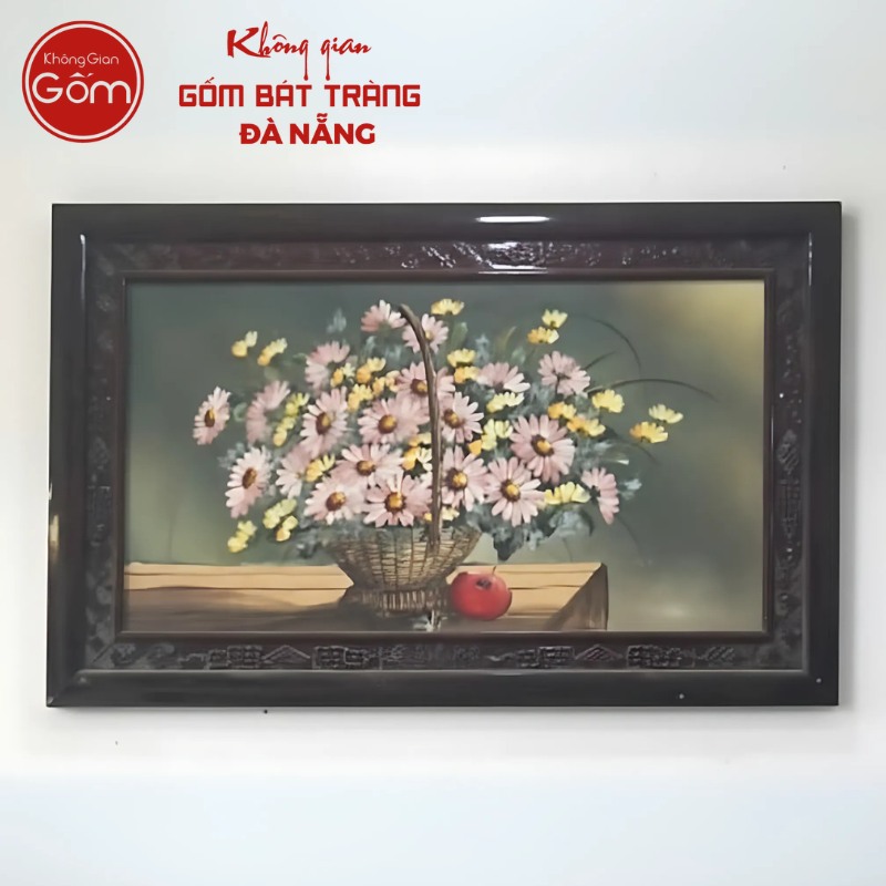 - Tranh lọ hoa: Hình ảnh một bình hoa gốm với những đóa hoa đang khoe sắc mang đến vẻ đẹp tươi mới, tinh tế và đầy sức sống cho căn phòng.
