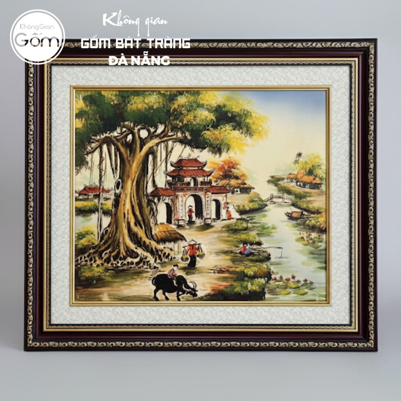 - Tranh cảnh vật quê hương: Những hình ảnh thân thuộc của làng quê Việt Nam như con sông, đồng lúa, lũy tre làng sẽ mang đến cảm giác ấm áp, gần gũi và bình yên.