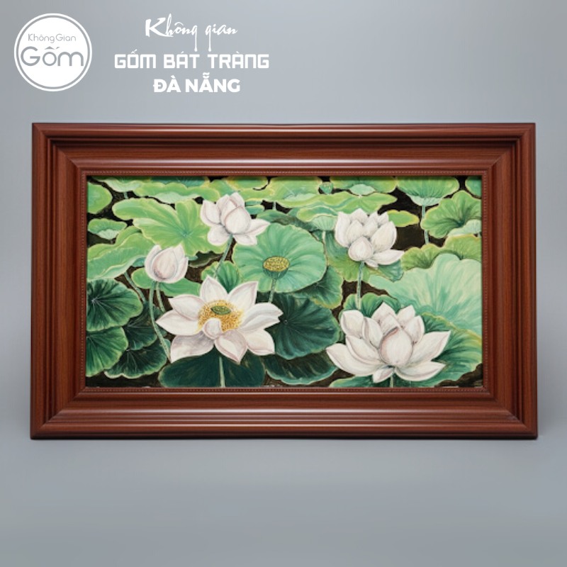 - Tranh bích tiểu liên hoa đắp nổi: Hình ảnh đóa sen được đắp nổi trên nền gốm mộc mạc tượng trưng cho sự thanh khiết, trong sạch và giác ngộ. Treo tranh sen trong phòng thờ giúp không gian thêm thanh tịnh và trang nhã.