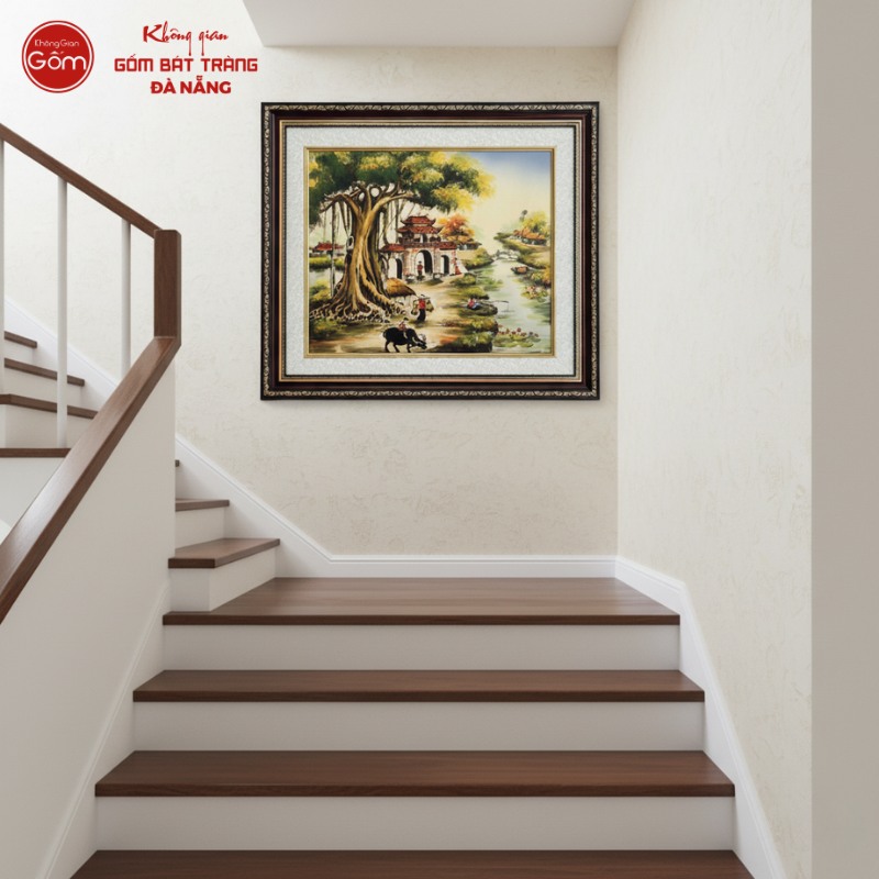 Các mẫu tranh gốm sứ cảnh vật quê hương thích hợp treo ở hành lang