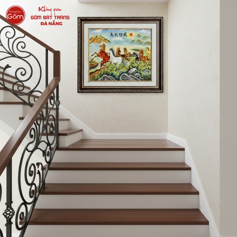 Mẫu tranh gốm sứ treo ở cầu thang đẹp, ấn tượng