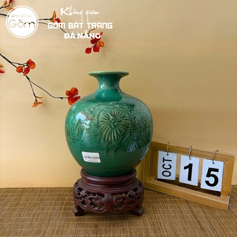 - Bình hút lộc men rạn đắp nổi: Vẻ đẹp mộc mạc, cổ kính và trang nghiêm của dòng men rạn đắp nổi rất phù hợp với không gian phòng thờ. Các họa tiết đắp nổi thường là Tứ linh, hoa sen… mang ý nghĩa tâm linh sâu sắc, thể hiện lòng thành kính của con cháu đối với ông bà, tổ tiên.