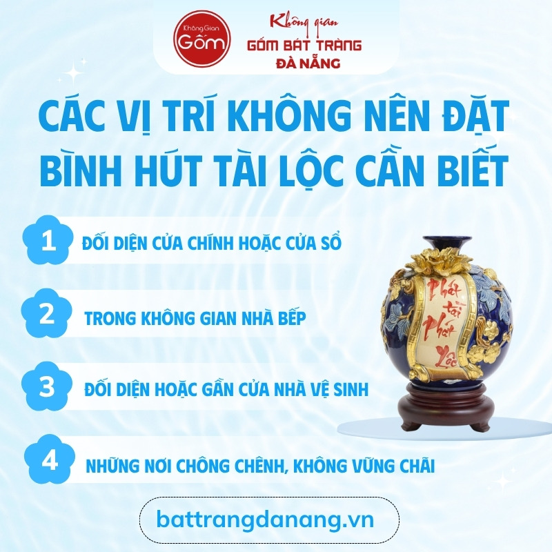 Bên cạnh những vị trí tốt, có những khu vực mang năng lượng không phù hợp có thể làm giảm tác dụng của bình. Để tránh hao tổn tài lộc, bạn cần tuyệt đối tránh đặt bình ở 3 vị trí đại kỵ sau: