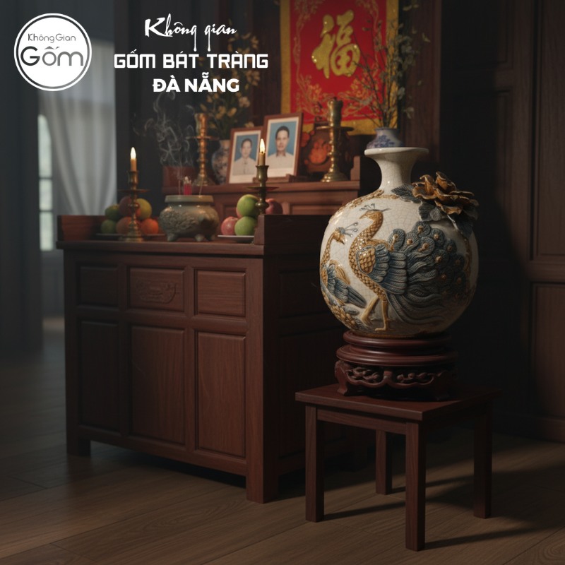 Bình hút lộc có thể được đặt ở hai bên bàn thờ một cách đối xứng để tạo sự cân bằng, hoặc đặt một bình theo nguyên tắc “Đông bình Tây quả” (bên trái đặt bình hoa, bên phải đặt đĩa quả). Dù đặt một hay hai bình, cũng cần đảm bảo sự trang trọng, sạch sẽ, thể hiện tấm lòng thành kính của gia chủ. Sự hiện diện của bình hút lộc gốm sứ Bát Tràng khiến không gian thờ tự thêm phần ấm cúng và vẹn tròn.
