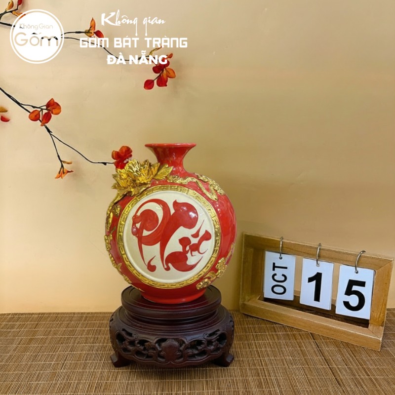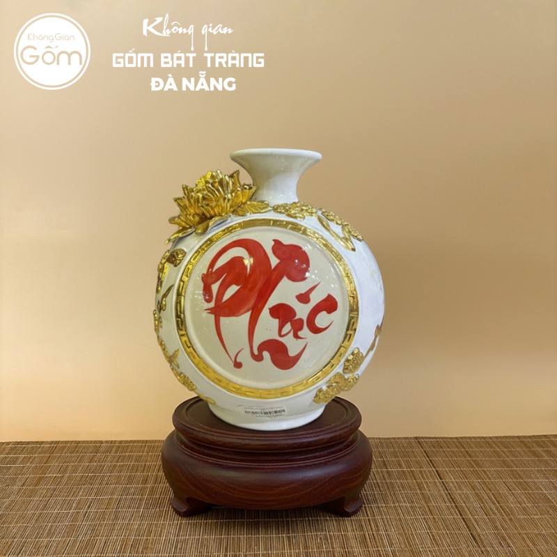 - Bình hút lộc chữ thư pháp đắp nổi dát vàng: Một cặp bình đắp nổi dát vàng chữ thư pháp như “Phúc” và “Vạn sự Như Ý” hay “Phát Tài Phát Lộc: đặt đối xứng trên ban thờ là vô cùng ý nghĩa. Điều này thể hiện mong ước của con cháu được thừa hưởng phúc đức của tổ tiên và nguyện sống có đức độ để phúc khí được lưu truyền mãi về sau.