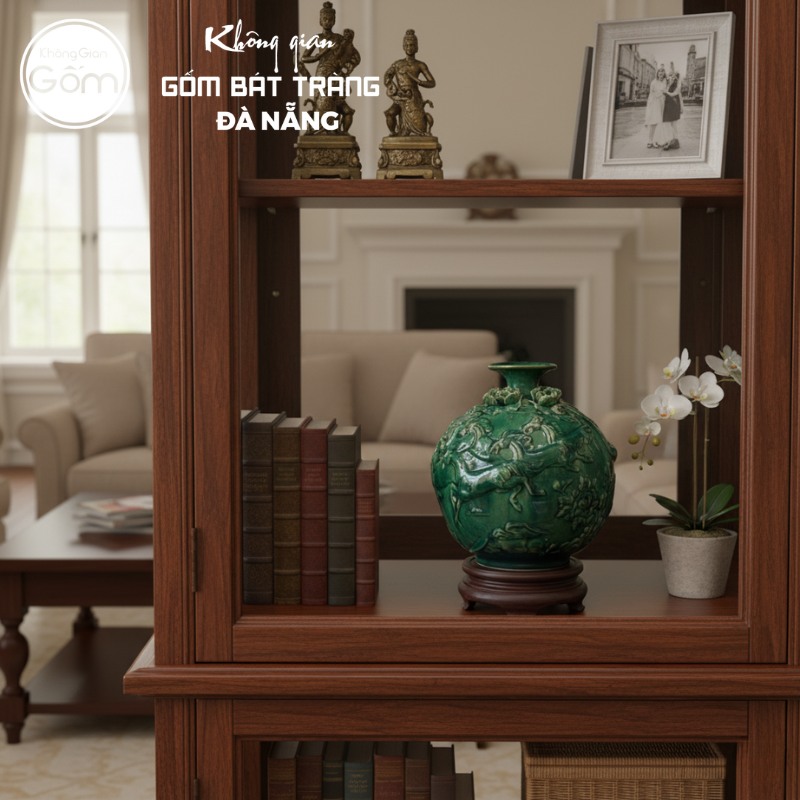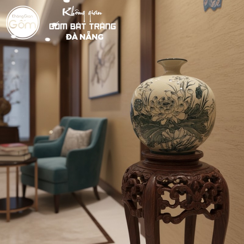 Phòng khách được xem là trái tim của ngôi nhà, là nơi hội tụ và lan tỏa vượng khí. Đặt một chiếc bình hút lộc Bát Tràng tại đây không chỉ tô điểm cho không gian thêm sang trọng mà còn mang ý nghĩa sâu sắc về việc thu hút tài lộc, nghênh đón quý nhân và giữ gìn sự hòa thuận cho cả gia đình. Năng lượng từ bình sẽ giúp điều hòa dòng khí, mang lại cảm giác bình an và may mắn.