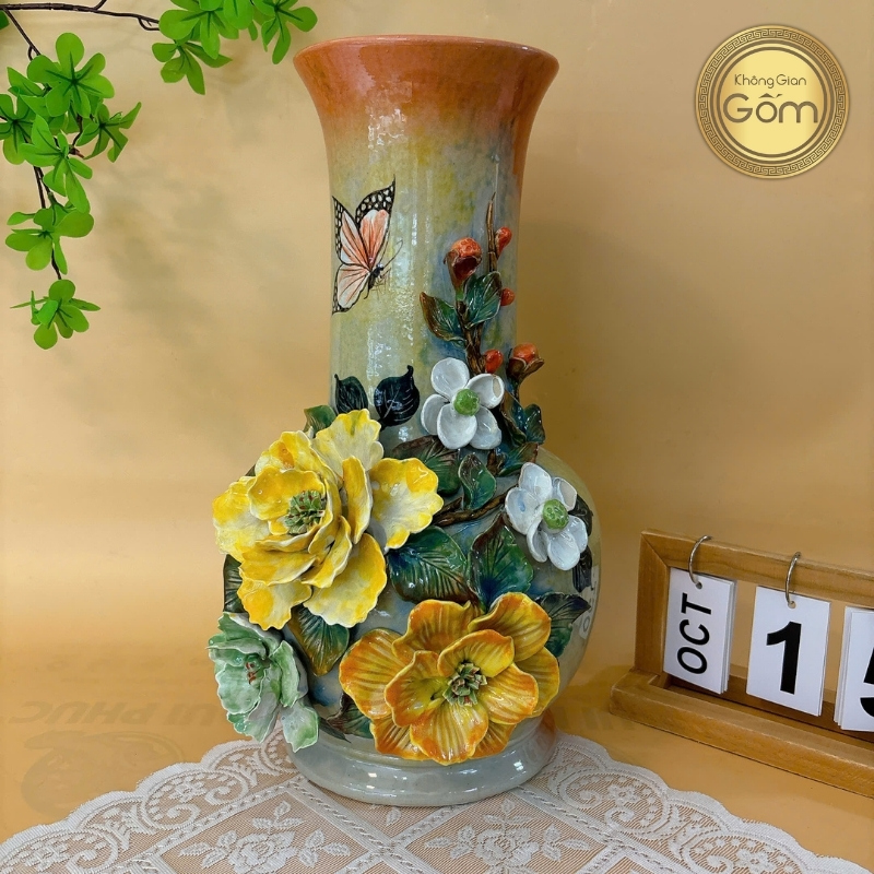 • Nếu mua làm quà biếu hoặc trưng ở đại sảnh: Những mẫu lọ hoa vẽ tay tỉ mỉ, đắp nổi họa tiết hoặc dát vàng mang giá trị nghệ thuật cao sẽ là lựa chọn xứng tầm. Những mẫu bình này không chỉ để cắm hoa mà còn là món đồ trang trí sang trọng, giúp không gian thêm đẳng cấp.
