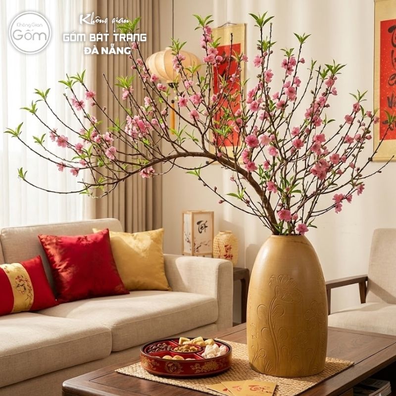 • Bình cao 40 – 50cm: Lý tưởng cho cành đào cao 1.2 – 1.5m (đặt ở góc phòng khách)