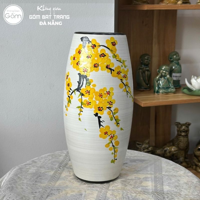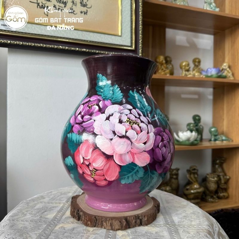 Với những gia đình thích chơi đào rừng tại Đà Nẵng, bình hoa dáng chum là sự lựa chọn lý tưởng. Thiết kế thân bình bề thế, đáy rộng và cốt gốm cực dày dặn giúp những mẫu bình chum trở thành “điểm tựa” vững vàng cho những cành đào rừng nặng ký. Chị em sẽ không cần phải lo lắng bình bị chông chênh khi cắm các nhành hoa cao lớn, xù xì.