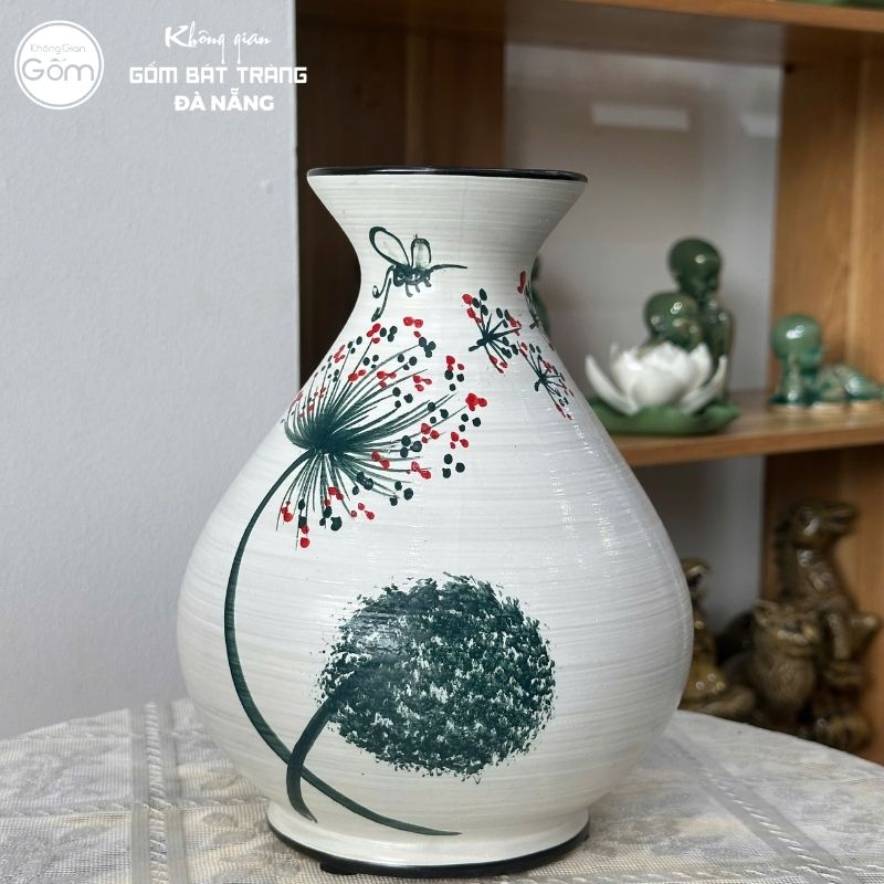 Dòng bình dáng bom năm nay tại showroom Không Gian Gốm Đà Nẵng cực kỳ đa dạng với các mẫu lọ hoa men sứ trắng thanh lịch hoặc men màu vẽ tay họa tiết hoa đào, hoa mai, hoa sen, chim cảnh sinh động,…
