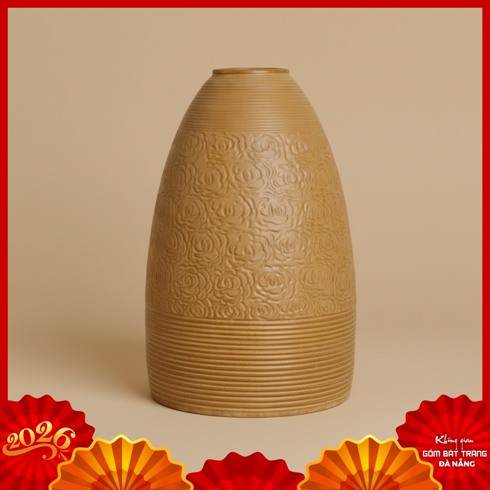 Ngoài ra, bạn nên ưu tiên những mẫu lọ gốm với cốt đất dày dặn nhằm đảm bảo độ bền cao và khả năng chịu lực tốt khi bài trí hoặc di chuyển, vệ sinh. Chất gốm cao cấp còn giúp chống thấm nước hiệu quả giúp lọ hoa luôn bền bỉ và giữ được vẻ sáng mới qua nhiều mùa Tết khác nhau.