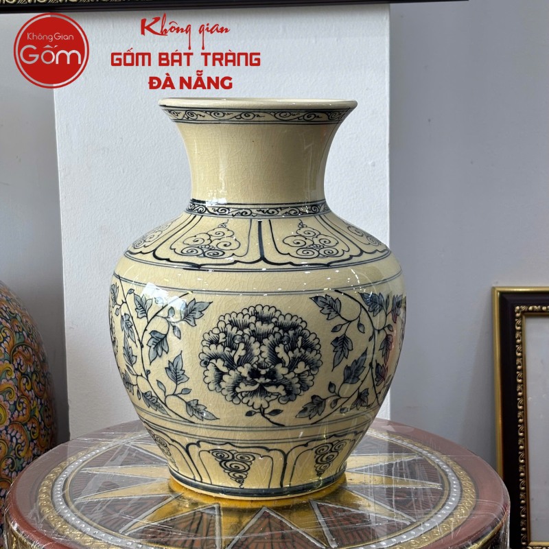 Không Gian Gốm Bát Tràng Đà Nẵng hiện có các mẫu mai bình cao cấp như mai bình họa tiết vàng kim vẽ trên nền men cao cấp. Ngoài ra, dòng mai bình đắp nổi hoặc đắp nổi dát vàng cũng là những lựa chọn giá trị, thể hiện được đẳng cấp của món quà.