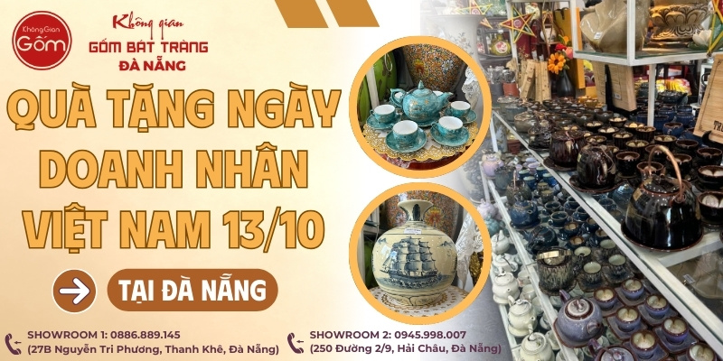 Bạn đang muốn tìm quà tặng Ngày Doanh nhân Việt Nam 13/10 tại Đà Nẵng sang trọng và xứng tầm, hãy ghé ngay Không gian Gốm Bát Tràng. Chúng tôi là cửa hàng chuyên bán gốm sứ quà tặng chất lượng, giá tốt nhất với 2 hệ thống showroom đặt tại: