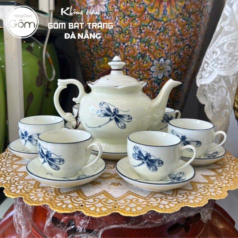 Bộ trà vẽ tay dáng cát tường họa tiết chuồn chuồn – 645.000vnđ/bộ