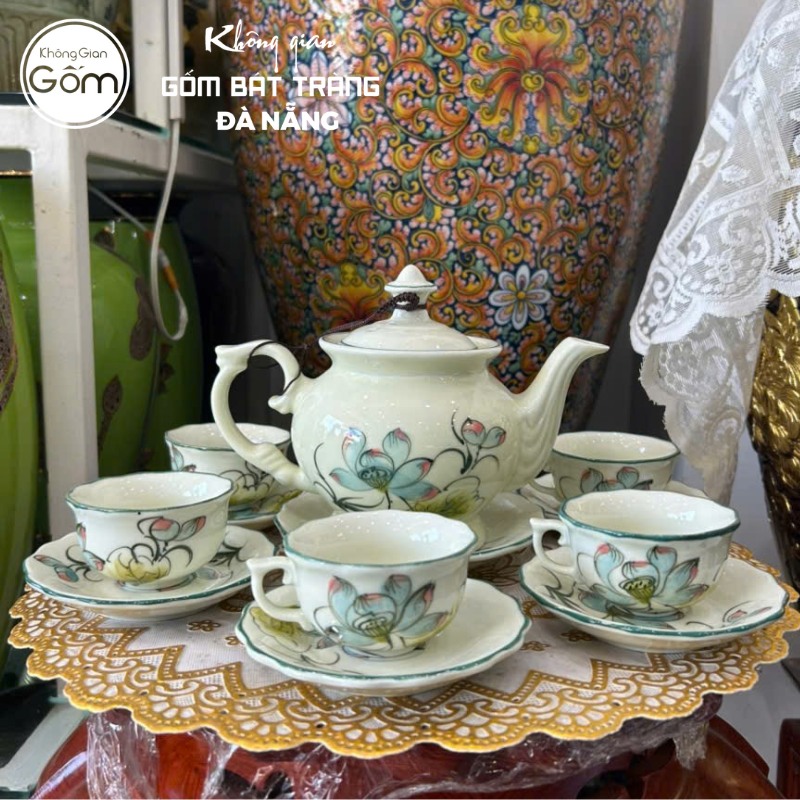 - Bộ ấm chén vẽ tay: Từng họa tiết hoa văn trên bộ trà đều được các nghệ nhân vẽ tay một cách tỉ mỉ, mang theo cái hồn và sự ấm áp của sản phẩm thủ công. Đây là món quà chứa đựng tình cảm và sự trân trọng sâu sắc.