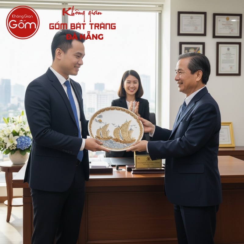 Một bức tranh gốm với các chi tiết được đắp nổi sống động sẽ là điểm nhấn sang trọng và ấn tượng cho không gian văn phòng. Các chủ đề ý nghĩa như “Thuận Buồm Xuôi Gió” hay cảnh Cầu Rồng đặc trưng của Đà Nẵng giúp bạn gửi gắm lời chúc thành công đến cấp trên một cách trân trọng. Với giá dao động từ 1.125.000đ – 1.700.000đ, đây là món quà giá trị để bạn thể hiện tấm lòng của mình.