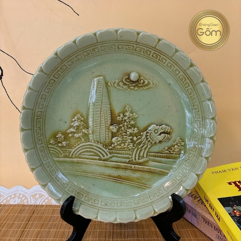 - Tranh gốm sứ đắp nổi cảnh thuyền buồm, cầu Rồng