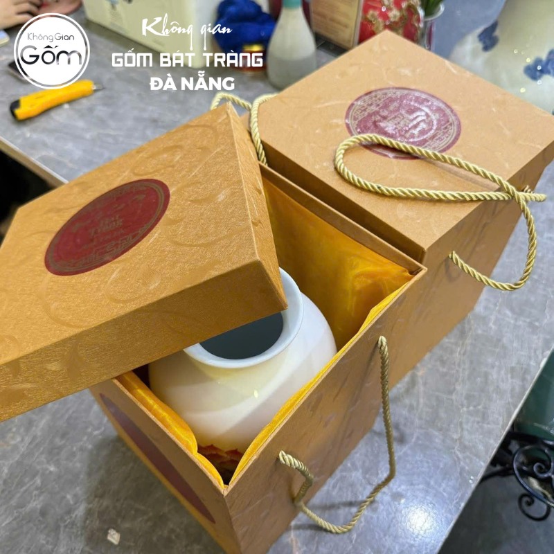 Hiểu được tầm quan trọng đó, Không gian Gốm Bát Tràng Đà Nẵng cung cấp dịch vụ đóng gói cao cấp cho mọi sản phẩm quà tặng. Chúng tôi đặc biệt sử dụng mẫu hộp xi lót lụa – loại hộp cứng cáp với sắc đỏ sang trọng, bề mặt bóng mịn, mang lại cảm giác đẳng cấp ngay từ cái nhìn đầu tiên. Bên trong hộp, mỗi sản phẩm gốm sứ đều được đặt trang trọng trên lớp lụa mềm mại, không chỉ giúp cố định, bảo vệ sản phẩm khỏi va đập, trầy xước mà còn tạo nên một tổng thể hài hòa, tinh tế.