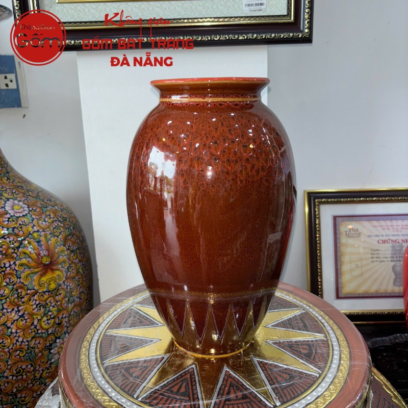 Mai bình men màu đỏ vẽ vàng kim cao cấp tặng sếp