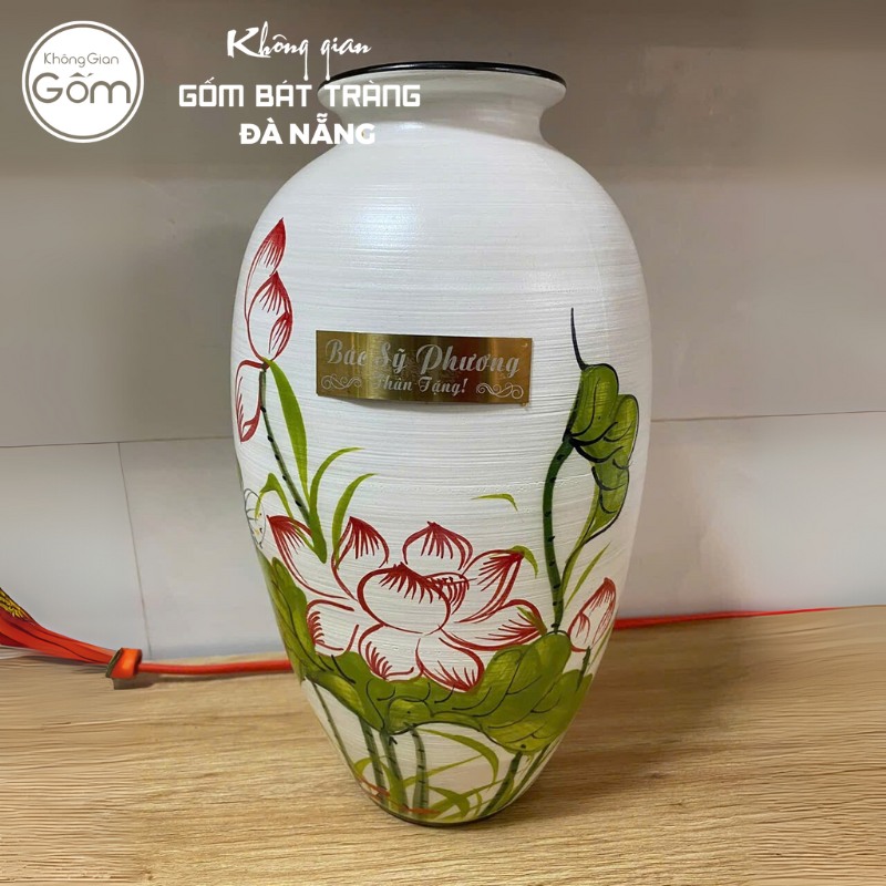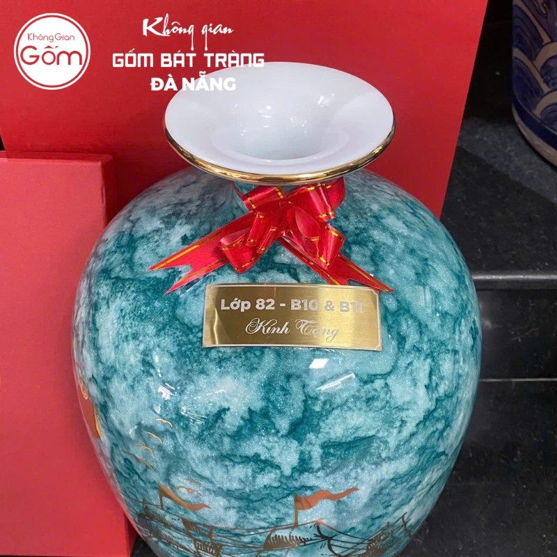 Đặc biệt hơn, để món quà mang đậm dấu ấn cá nhân và trở nên độc đáo, Không gian Gốm Bát Tràng Đà Nẵng còn cung cấp dịch vụ khắc tên người nhận, tên công ty, và lời chúc ý nghĩa lên một miếng thiếc sang trọng. Miếng thiếc này sẽ được dán một cách tinh tế lên sản phẩm, biến món quà gốm sứ thành một vật phẩm kỷ niệm độc nhất, mãi ghi dấu ấn về người tặng và thông điệp bạn muốn gửi trao.
