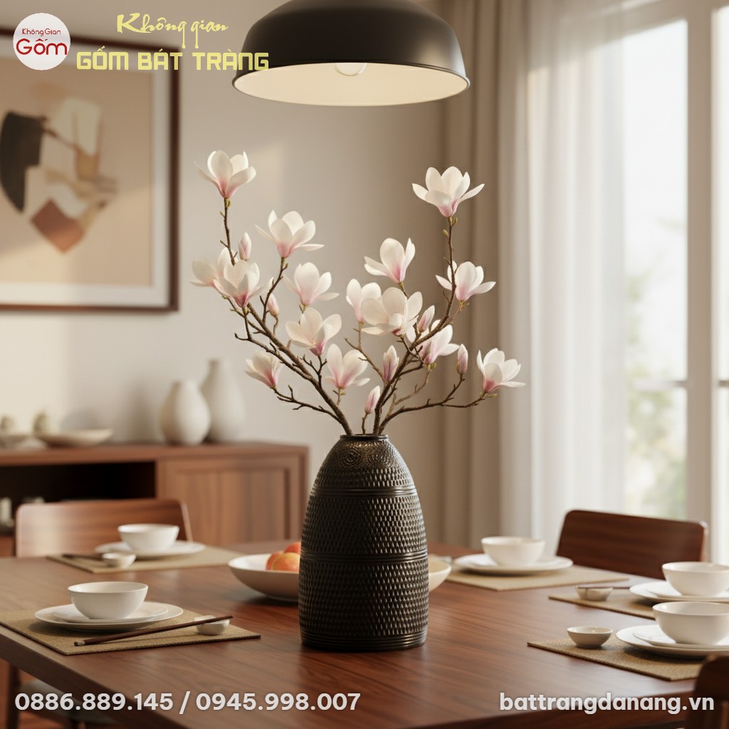 Bình hoa men đen là điểm nhấn sang trọng cho mọi không gian nội thất hiện đại.