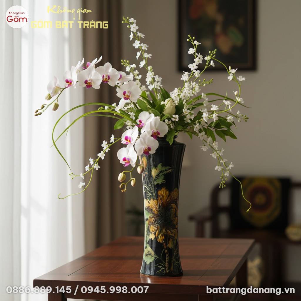 Bình hoa là điểm nhấn nghệ thuật hoàn hảo cho phòng khách hoặc sảnh sang trọng.