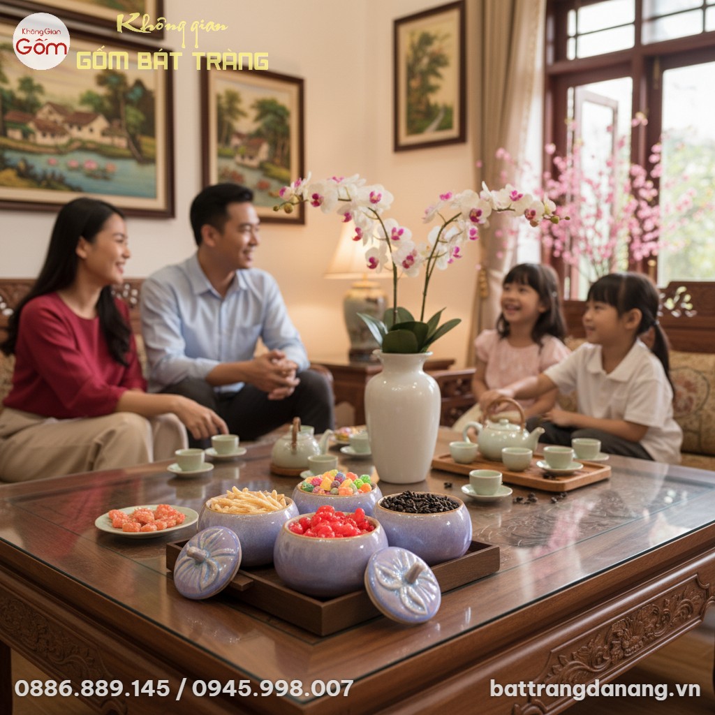Trong văn hóa Việt, mỗi dịp Tết đến, khay mứt luôn là trung tâm của mọi câu chuyện, là nơi khởi nguồn của những khoảnh khắc sum vầy ấm áp. Một bộ hũ đựng mứt tết Bát Tràng cao cấp như thế này chính là mảnh ghép hoàn hảo, gửi gắm lời chúc về một năm mới sung túc, ngọt ngào và trọn vẹn.