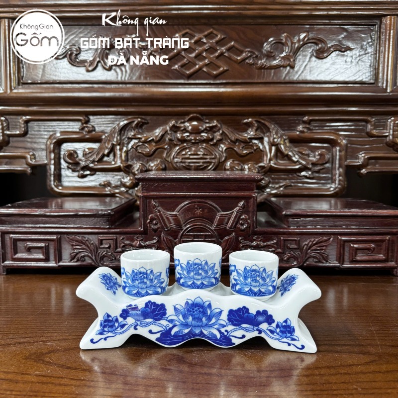 Bộ đồ thờ men lam họa tiết song long liên hoa là bộ vật phẩm tâm linh mang đến vẻ đẹp thanh tịnh và trang nghiêm cho không gian thờ tự. Nổi bật trên nền men lam cổ điển, hình ảnh đóa sen thanh khiết được khắc họa tinh tế, không chỉ là điểm nhấn thẩm mỹ mà còn mang ý nghĩa về sự an yên, thuần khiết. Việc bài trí bộ sản phẩm đồng bộ trên bàn thờ gia tiên sẽ giúp thể hiện trọn vẹn tấm lòng thành kính của con cháu, đồng thời góp phần mang lại sự ấm cúng, viên mãn cho gia đạo.