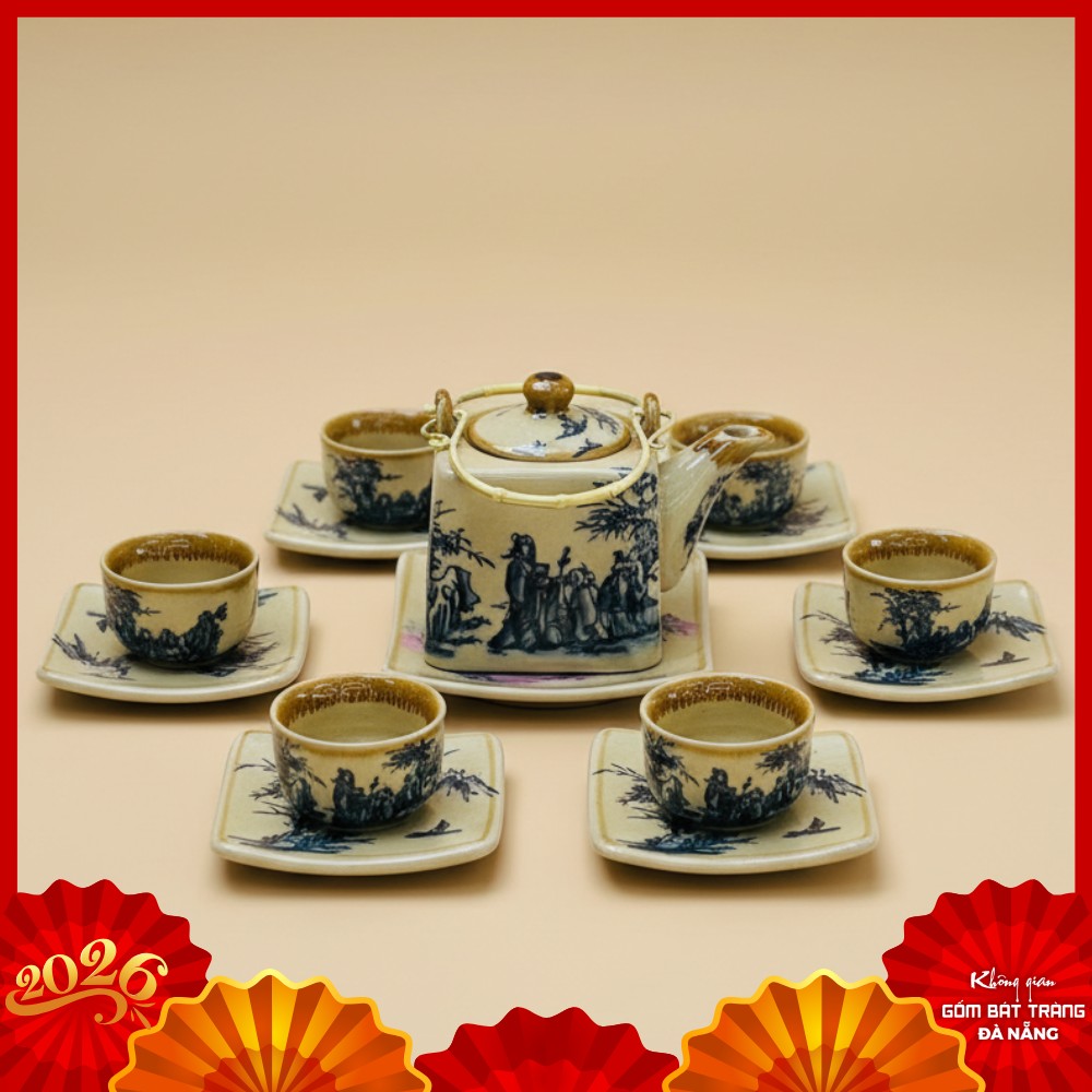 Bộ Trà Men Rạn Dáng Vuông Họa Tiết Trúc Lâm Thất Hiền BT-BAT113 là một tác phẩm nghệ thuật gốm sứ tinh xảo, nơi tinh hoa văn hóa Trà Việt hòa quyện cùng nghệ thuật thủ công truyền thống Bát Tràng.