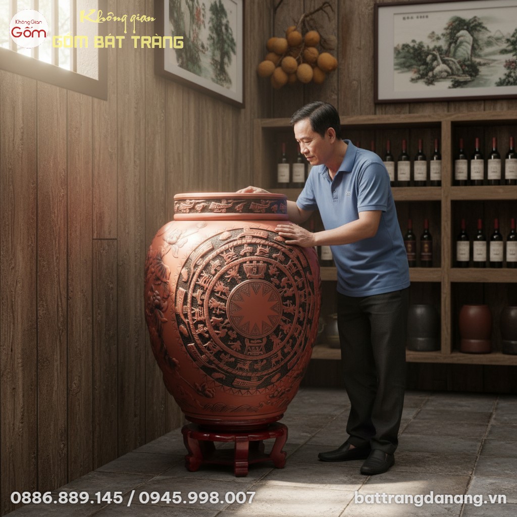 Chiếc chum này vừa là vật dụng lý tưởng để ngâm ủ những loại rượu hảo hạng, vừa là một biểu tượng văn hóa, mang trong mình linh hồn của nền văn minh Việt cổ đại. Đây là một minh chứng sống động cho dòng chum ngâm rượu Bát Tràng, nơi giá trị truyền thống và công năng hiện đại hòa quyện.