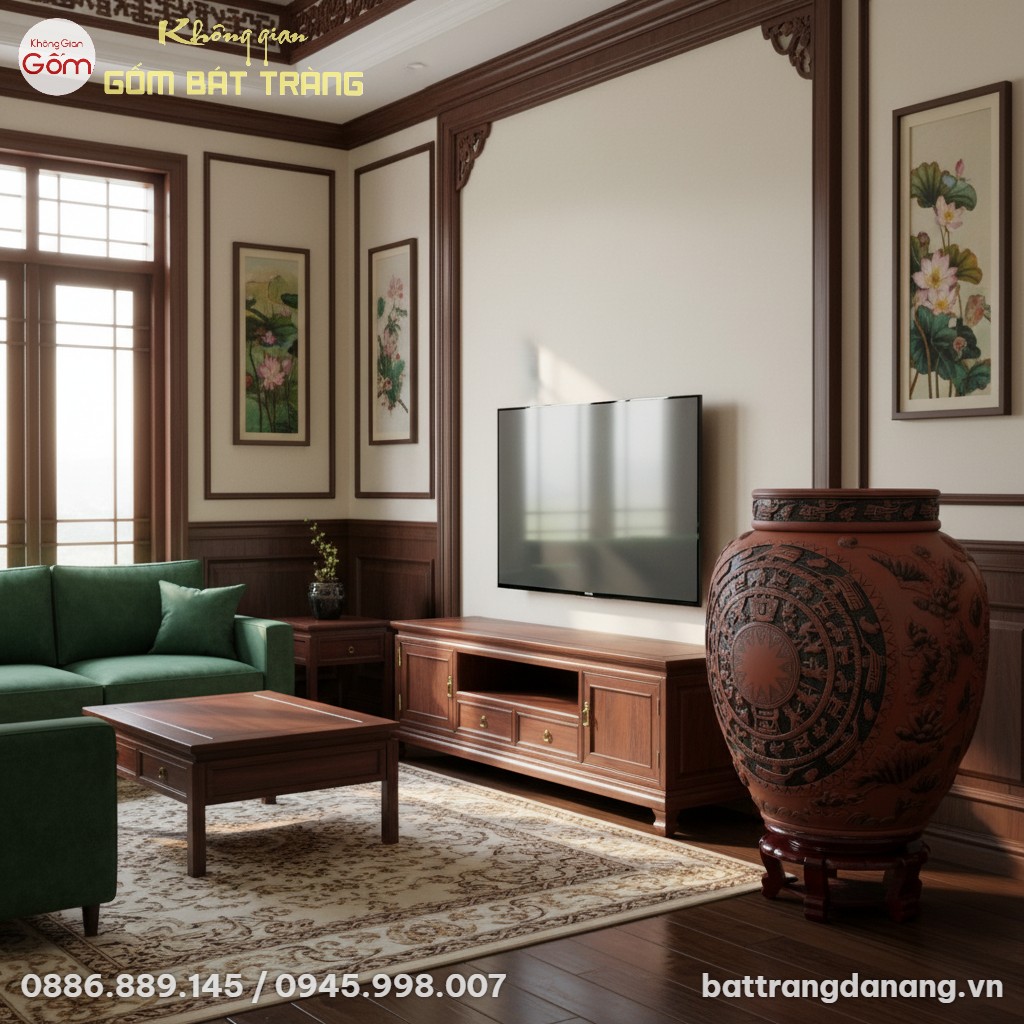- Phòng khách: Đặt cạnh tủ rượu hoặc góc trang trí, tạo điểm nhấn văn hóa độc đáo.