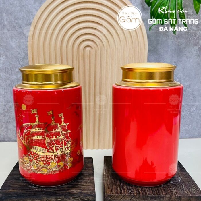 Hũ đựng trà gốm sứ dáng trụ màu đỏ họa tiết thuận buồm xuôi gió BT-HĐT21 là sản phẩm được sử dụng khá phổ biến và được rất nhiều người tin dùng.