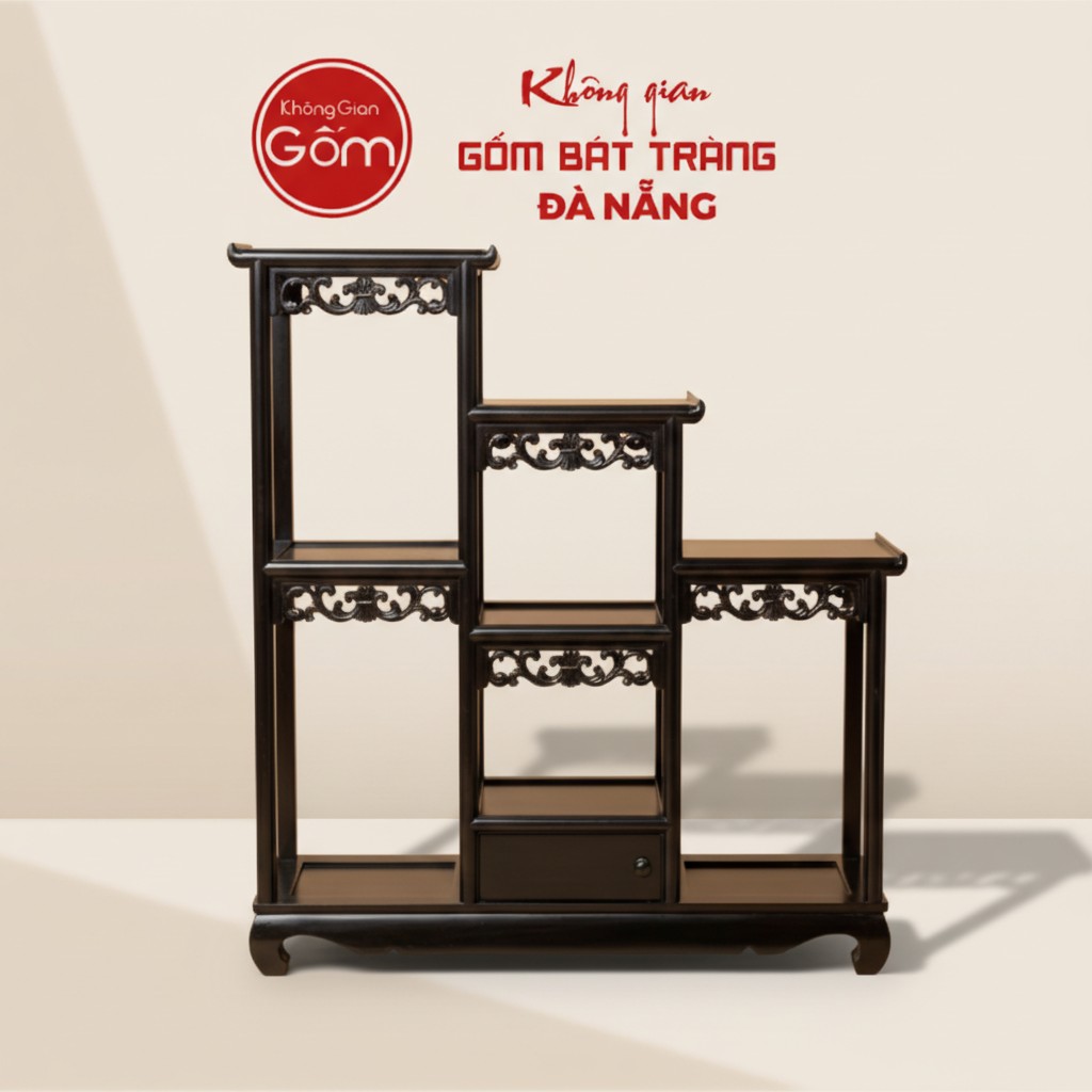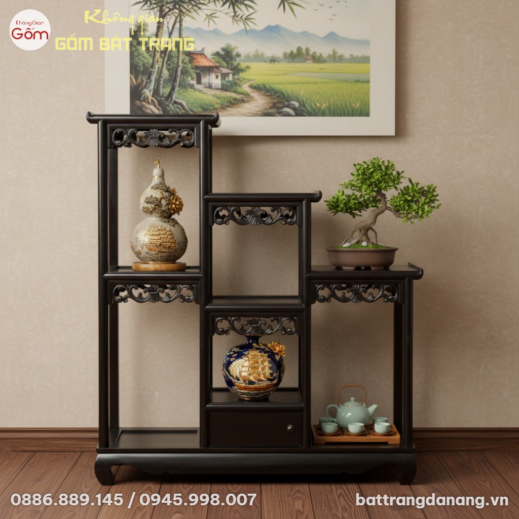 Giữa muôn vàn sản phẩm đồ gỗ trưng bày, đặc biệt là các loại đôn kệ gỗ cao cấp, chiếc kệ này tỏa sáng với thiết kế độc đáo và giá trị thẩm mỹ vượt trội, là điểm nhấn không thể thiếu trong không gian sống của những người yêu cái đẹp hoài cổ và tinh tế.