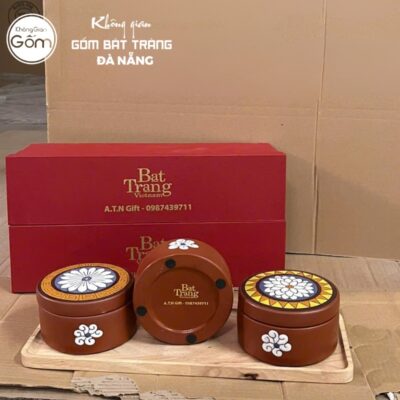 - Chất liệu gốm sứ Bát Tràng cao cấp: Mỗi hộp mứt được làm từ nguyên liệu đất chọn lọc, nung ở nhiệt độ cao theo quy trình chuẩn làng nghề Bát Tràng, đảm bảo độ bền vượt trội, khả năng giữ nhiệt tốt và an toàn tuyệt đối cho sức khỏe người sử dụng.
