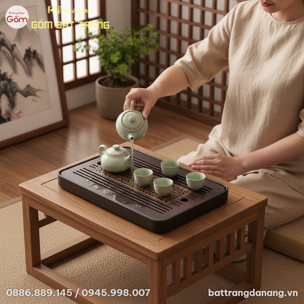 - Hứng nước thừa khi pha trà, giữ bàn trà sạch sẽ, đặc biệt khi kết hợp cùng bộ ấm trà Bát Tràng.