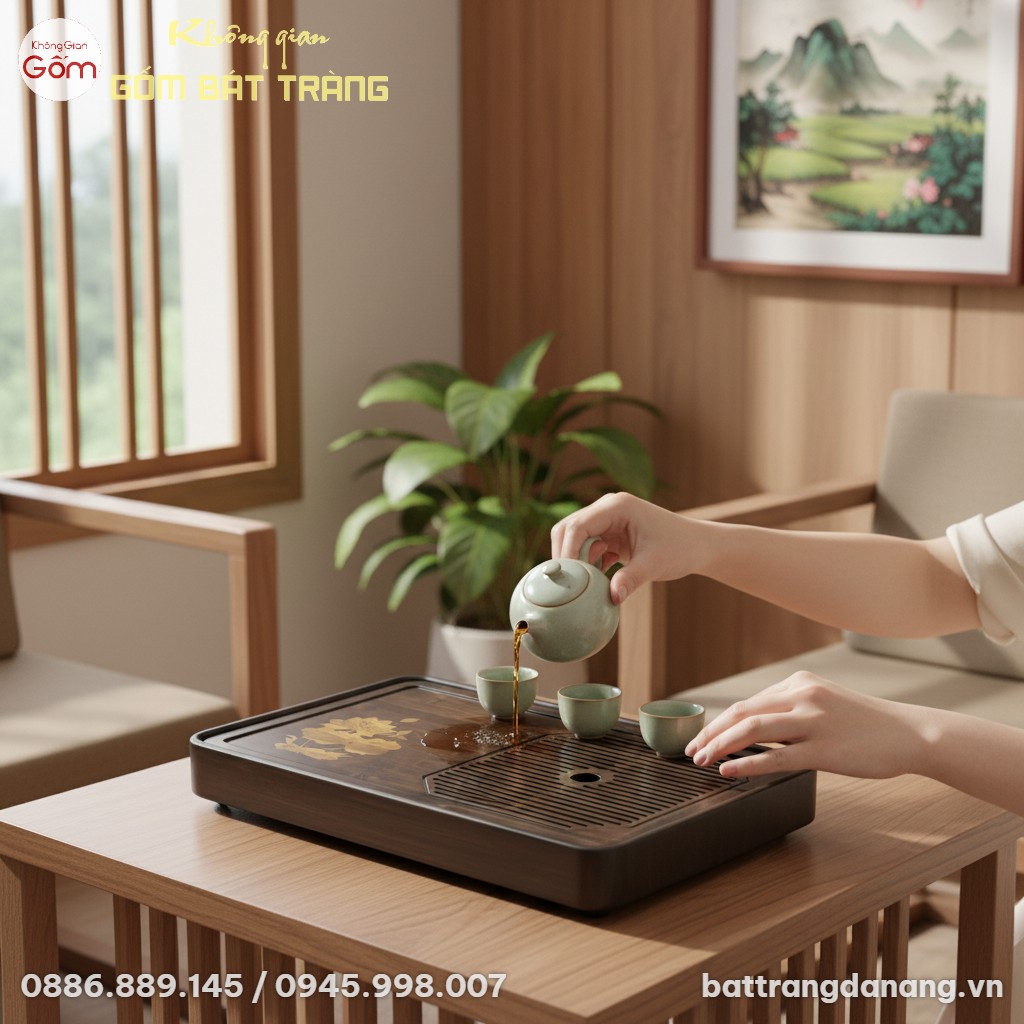 Với vẻ đẹp thanh lịch và ý nghĩa sâu sắc, Khay Trà Gỗ Họa Tiết Hoa Sen dễ dàng trở thành điểm nhấn tinh tế trong bất kỳ không gian nào. Đặt khay trên bàn phòng khách, tại không gian trà đạo riêng tư hay trong quán cà phê mang phong cách Á Đông, sản phẩm đều toát lên sự tĩnh tại và hài hòa. Đây cũng là món quà tặng vô cùng ý nghĩa và sang trọng, thể hiện sự tinh tế của người tặng dành cho bạn bè, đối tác hoặc những người yêu gốm sứ Bát Tràng tại Đà Nẵng và văn hóa trà Việt.