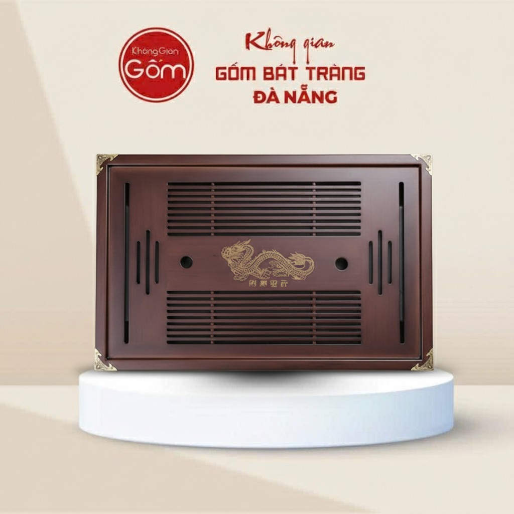 Ngoài vẻ đẹp mỹ miều, Khay Trà Gỗ Cao Cấp còn được thiết kế với sự thấu hiểu sâu sắc về nhu cầu của người yêu trà. Bề mặt khay có các khe thoát nước tiện lợi, đảm bảo nước trà thừa hay nước tráng chén sẽ được dẫn xuống khay chứa bên dưới một cách gọn gàng, giữ cho không gian pha trà luôn sạch sẽ và khô ráo. Điều này đặc biệt quan trọng trong các buổi trà đạo trang trọng, nơi sự tinh tế và ngăn nắp được đề cao.