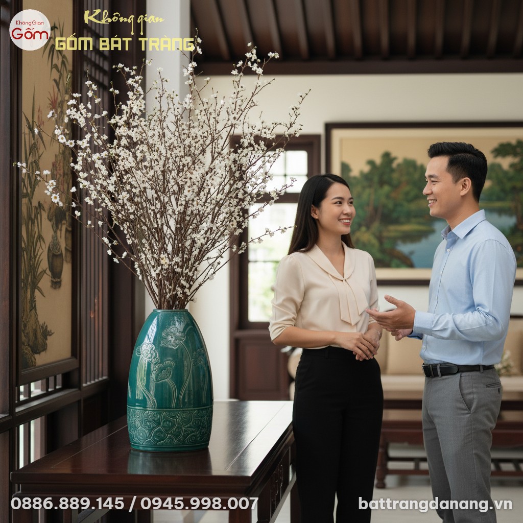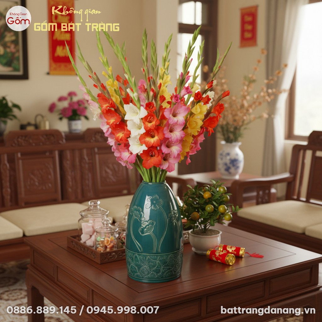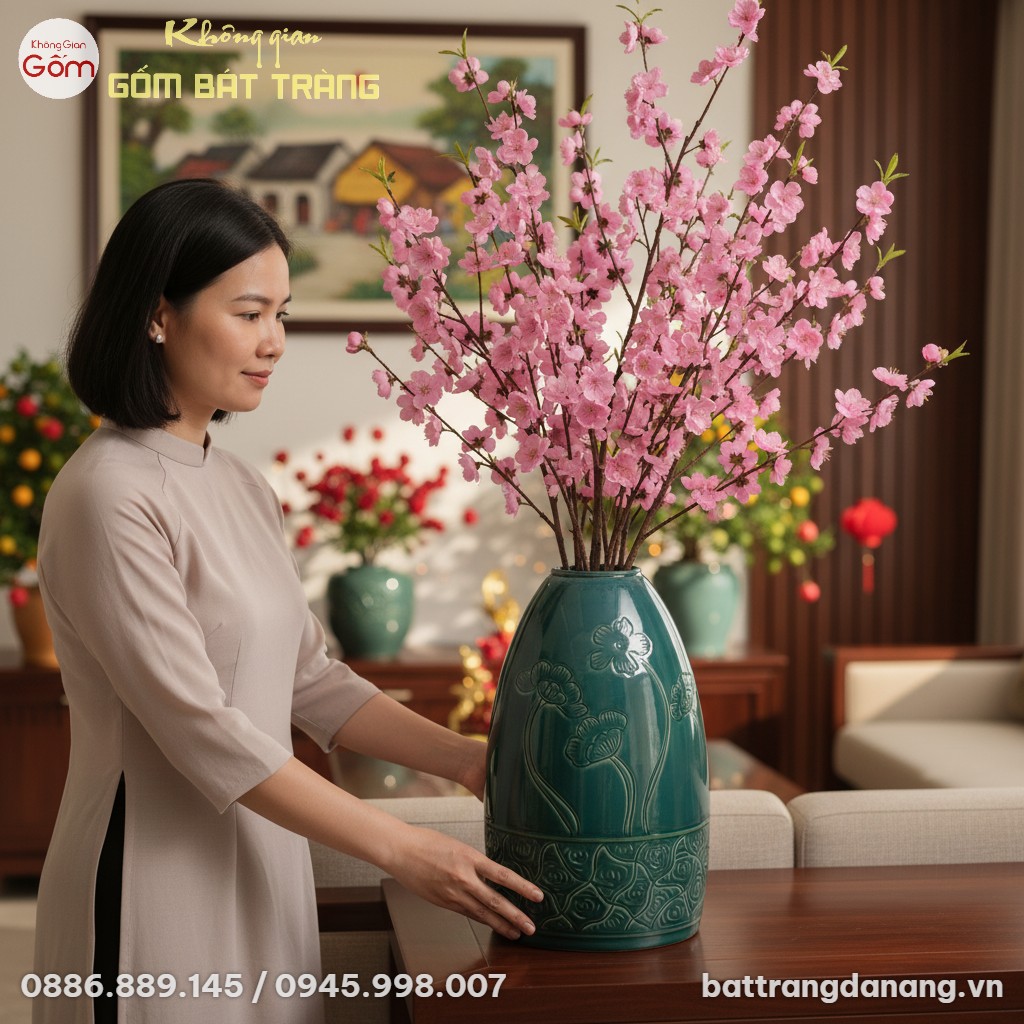 Lọ Hoa Men Xanh Ngọc Khắc Hoa Dáng Chuông BT-BH153 là tác phẩm gốm sứ Bát Tràng độc đáo, cao 42cm với sắc men ngọc tinh tế và họa tiết hoa lá khắc thủ công. Thiết kế dáng chuông hiện đại, miệng nhỏ, lý tưởng để cắm các loại hoa thân dài hoặc làm vật trang trí đẳng cấp, mang đến vẻ đẹp vĩnh cửu cho không gian sống.
