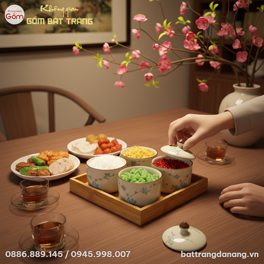 Mỗi sản phẩm gốm sứ Bát Tràng đều ẩn chứa tinh hoa của làng nghề truyền thống. Với bộ khay mứt này, sự kết hợp giữa chất liệu gốm sứ cao cấp và khay gỗ tự nhiên đã tạo nên một tổng thể hài hòa, bền đẹp theo thời gian. Đây là lựa chọn thông minh cho những ai tìm kiếm sự cân bằng giữa giá trị thẩm mỹ và công năng sử dụng.