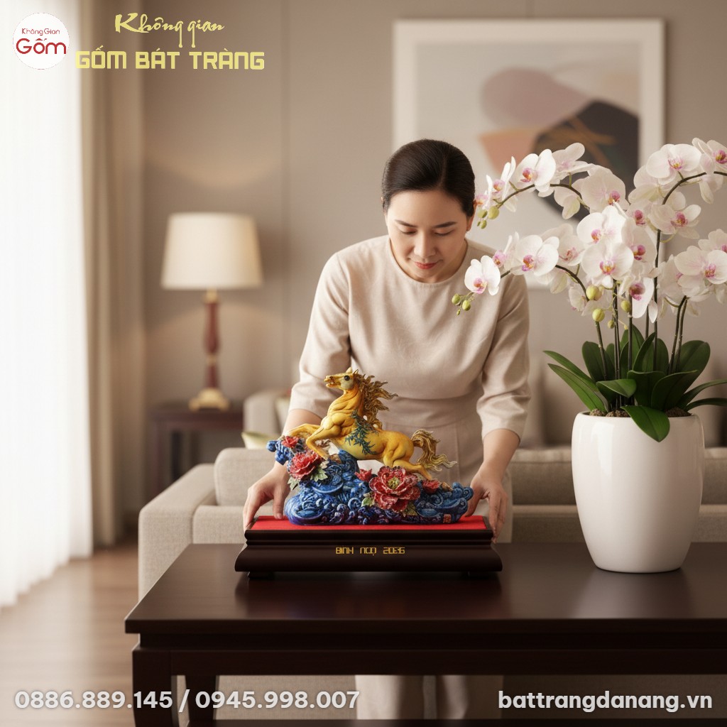 Với vẻ đẹp tinh xảo và ý nghĩa phong thủy sâu sắc, sản phẩm này sẽ làm say lòng những người yêu mến gốm sứ, đồng thời là lời chúc mạnh mẽ, mở ra một năm Bính Ngọ 2026 đầy thắng lợi.