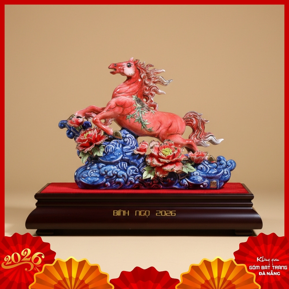 Là biểu tượng của sức mạnh và thành công, Tượng Gốm Sứ Hùng Vân Mã Bính Ngọ 2026 Bát Tràng BT-TG02 mang đến ý nghĩa “Mã Đáo Thành Công”, “Phú Quý Vinh Hoa”. Tác phẩm tinh xảo này được chế tác thủ công với kỹ thuật đắp nổi và vẽ vàng 24k, là vật phẩm phong thủy đẳng cấp, lý tưởng cho doanh nhân thành đạt và người yêu gốm sứ.