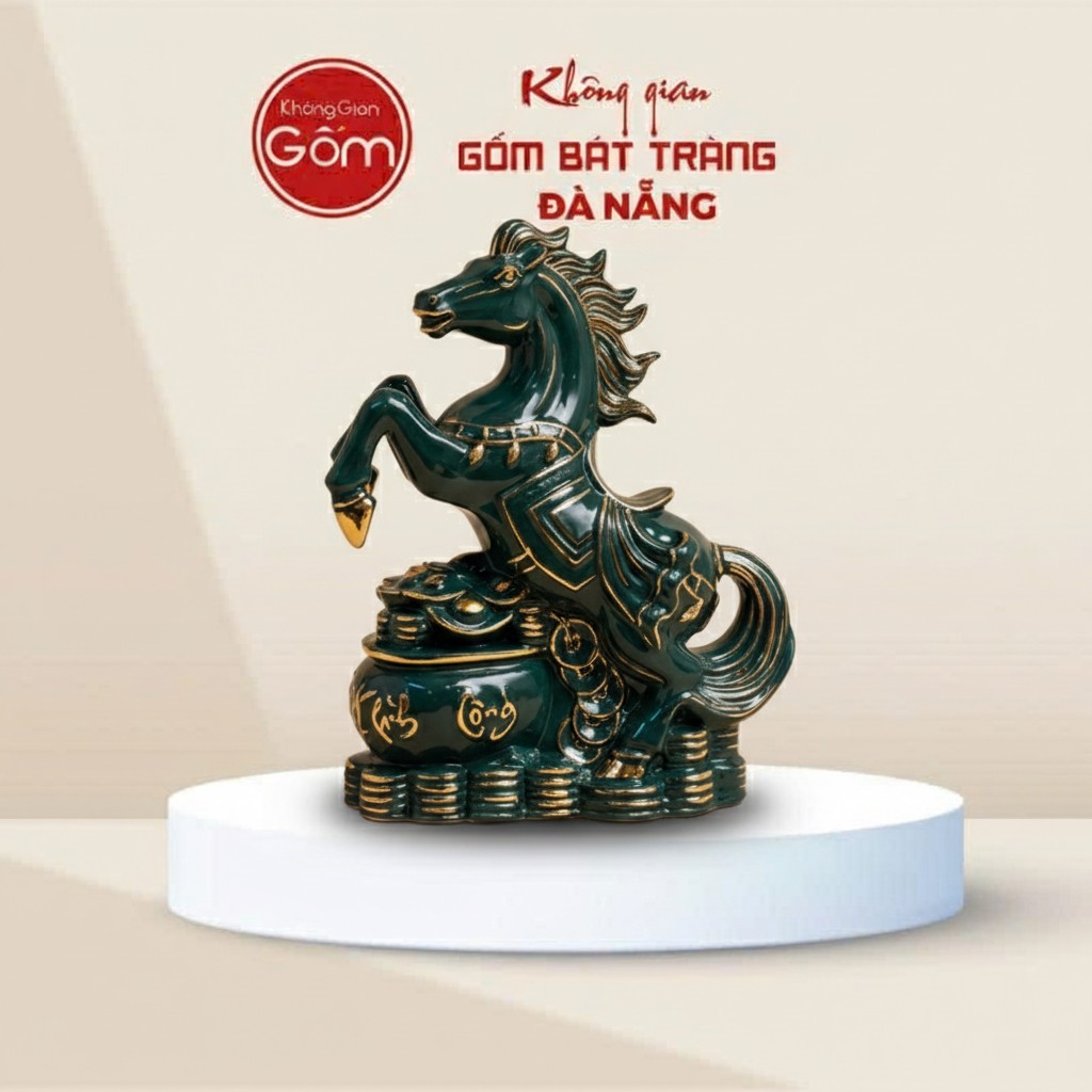 Tượng Ngựa Phú Quý Men Xanh Vẽ Vàng Bát Tràng BT-TG07 là một tuyệt tác nghệ thuật gốm sứ Bát Tràng, biểu trưng cho sức mạnh, tốc độ và khát vọng chinh phục thành công.