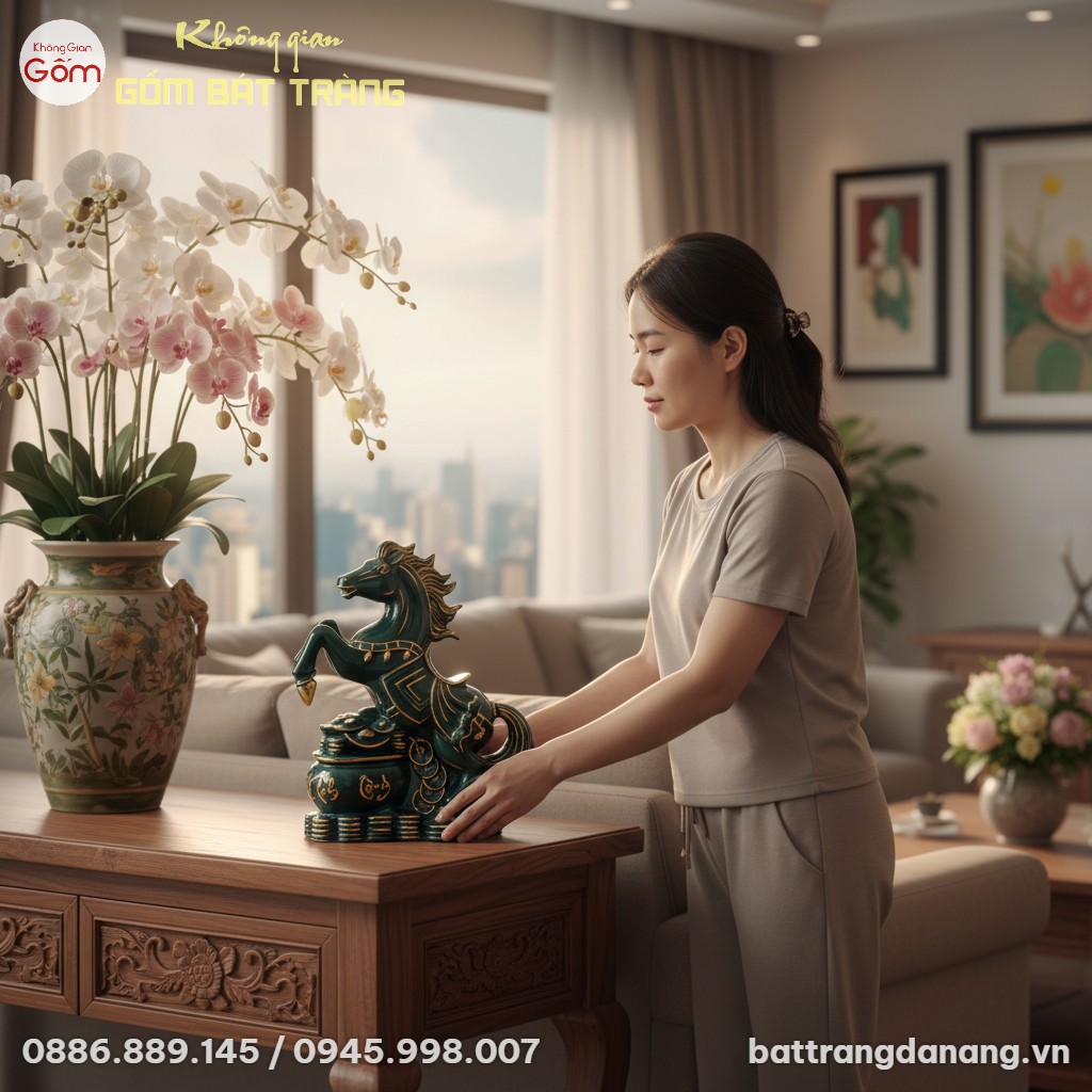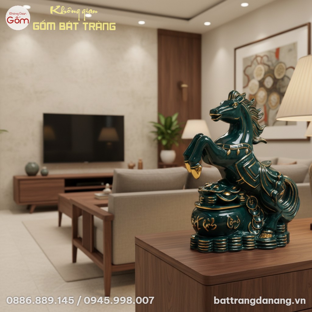 Việc bài trí Tượng Ngựa Phú Quý Men Xanh Vẽ Vàng Bát Tràng BT-TG07 đúng cách sẽ giúp phát huy tối đa ý nghĩa phong thủy, mang lại nguồn năng lượng tích cực cho gia chủ và không gian. Đây là vật phẩm lý tưởng để đặt tại: