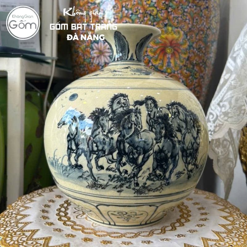 Mẫu bình hút lộc men rạn hanh vàng họa tiết mã đáo thành công ý nghĩa