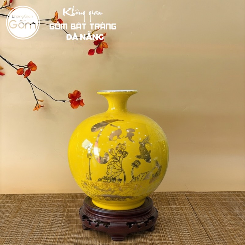 Mẫu bình hút lộc men rạn hanh vàng họa tiết hoa sen ý nghĩa